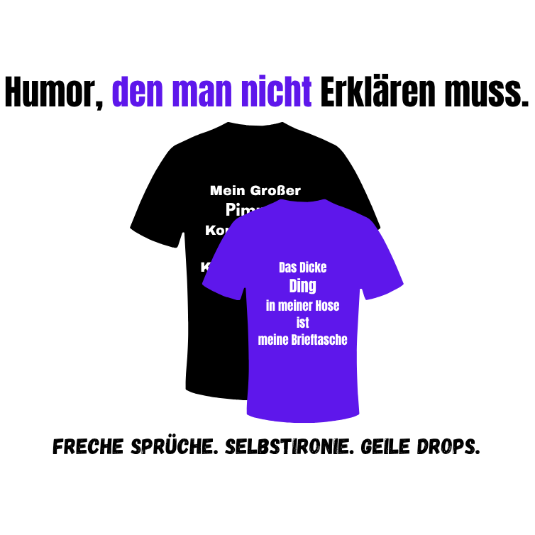 Unsere T-Shirts sind Statements, für alle, die keinen Filter brauchen, über sich selbst lachen können und wissen, dass Humor manchmal genau da anfängt, wo andere die Augen verdrehen.